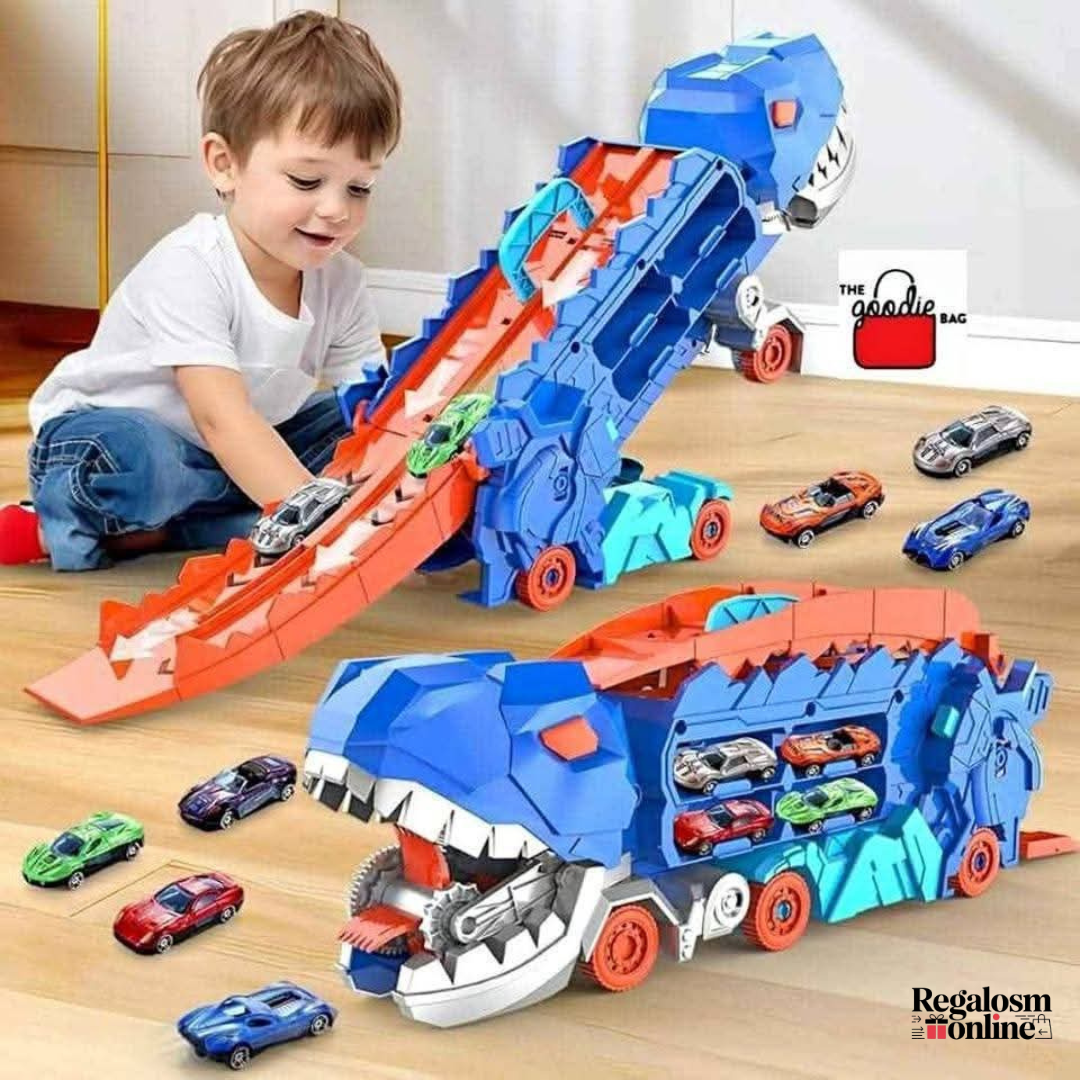 ¡El juguete más feroz y divertido ha llegado! Combina la emoción de los autos de carrera con la fuerza salvaje de un dinosaurio gigante.